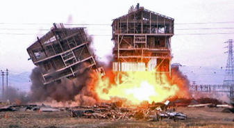 | The implosion appeared to go off as planned, until people started screaming for help at a nearby parking lot. Photo Credit: http://www.nbcbayarea.com |